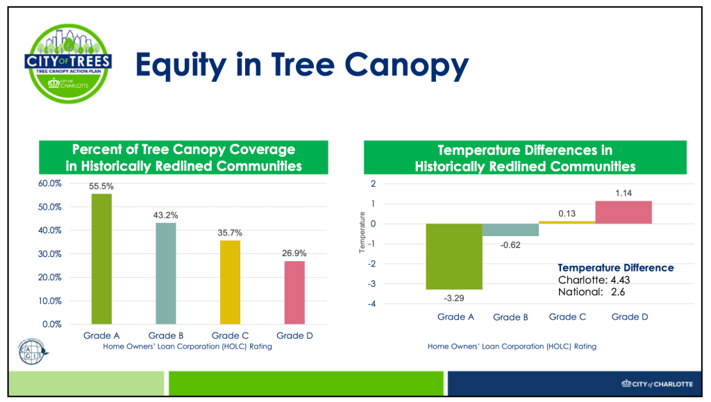 In the face of rising temperatures and the Urban Heat Island Effect, Charlotte’s trees are our natural air conditioners, offering shade, cooling, and numerous other benefits. As we work to expand and protect our tree canopy, it’s crucial to focus on equitable access to these cooling benefits for all residents. By joining hands and taking collective action, we can harness the power of trees to create a more comfortable, healthier, and resilient Charlotte for everyone. To learn more check out: charlottenc.gov/trees.