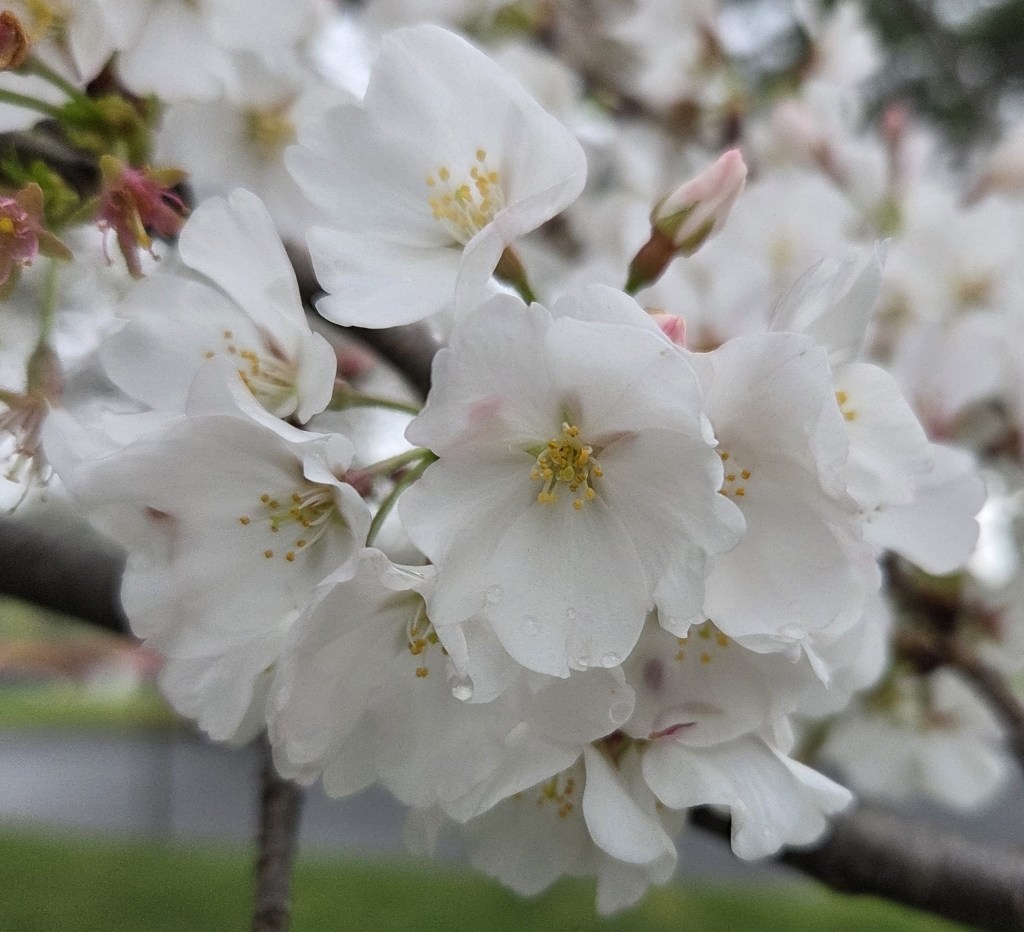Yoshino Cherry: A small ornamental tree with white-to-light pink 5-petaled flowers that grow in clusters of 3-6. The tree will bloom with flowers first in late March to early April, before its leaves come out. Photo Credit: City of Charlotte